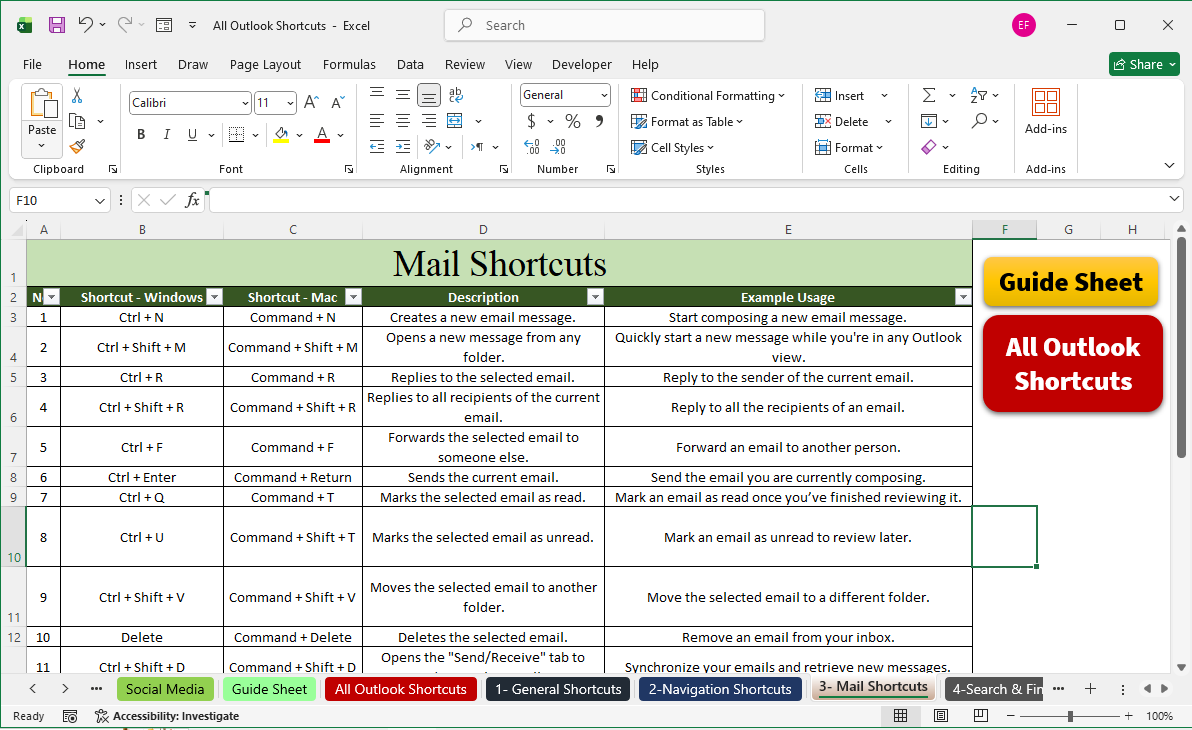 Excel File: An interactive Excel spreadsheet containing all the Outlook shortcuts for hands-on learning.